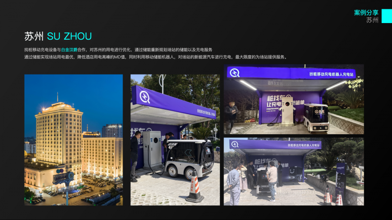 找樁移動充電設備與白金漢爵合作,對蘇州的用電進行優(yōu)化,通過儲能重新規(guī)劃場站的儲能以及充電服務 通過儲能實現場站用電最優(yōu),降低酒店用電高峰的MD值,同時利用移動儲能機器人,對場站的新能源汽車進行充電,最大限度的為場站提供服務